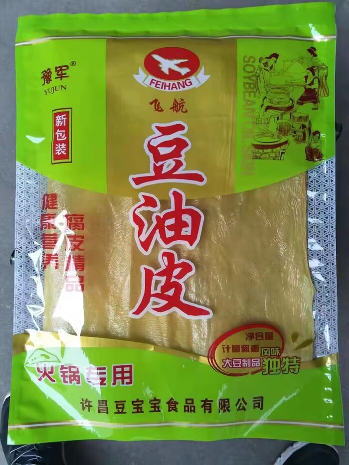 豆皮是大豆磨漿燒煮后,凝結(jié)干制而成的豆制品。
